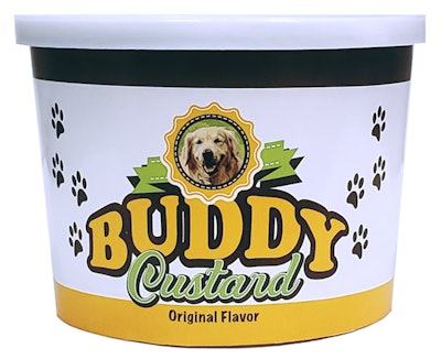 Buddy Custard is a frozen treat made for dogs as part of a canine health and wellness program, available in two flavors. The original flavor consists of cottage cheese and flaxseed oil in a specially blended formula based on technology called the “Budwig Protocol.” The peanut butter flavor has the same core formula as the original and consists of only four ingredients: cottage cheese, flax seed oil, stevia and peanut butter flavoring.