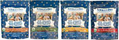 Newman’s Own Organics New Zealand Ranch Style dog treats are made with New Zealand organic lamb or organic beef and carry the US Department of Agriculture seal for having 95% organic ingredients. The treats are available in four flavors: Lamb & Sweet Potato, Beef & Vegetable, Beef & Barley and Lamb & Barley. The breakable, scored biscuits come in a 10-ounce resealable pouch. The treats contain no wheat or corn, no artificial colors or flavor enhancers, and they are free of added hormones, antibiotics and chemical additives, according to the company.